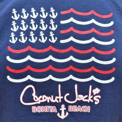 Home / Kid's Clothing / American Flag American Flag$15.00 Size Choose an optionX SmallSmallMediumLargeClear American Flag quantity Add to cart SKU: American Flag Category: Kid's Clothing Tags: baby, beach, blue, bonita, bonita beach, child, clothing, coconut jacks, fish, frog, green, kids, kids clothing, orange, pink, purple, rainbow, red, tie dye, yellow Product ID: 9400 Description Description Coconut Jack’s Kid’s American Flag! 100% Cotton Sizes – X Small, Small, Medium, Large You may also like… Out of stock Coconut Jack’s Red Lobster Stuffed Animalanimal, beach, coconut jacks, dory, fish, florida, fluffy, gift, lobster, red, stuffed animal, toy $15.00 Read more Coconut Jack’s Green Sea Turtle Stuffed Animalanimal, beach, blue, brown, coconut jacks, florida, gift, green, shell, stuffed animal, tony, tortoise, toy, turtle, yellow $15.00 Buy now Related products Out of stock Coconut Jack’s Kid’s Tie-dye Shirtbaby, beach, blue, bonita, bonita beach, child, clothing, coconut jacks, fish, frog, green, kids, kids clothing, orange, pink, purple, rainbow, red, tie dye, yellow $15.00 Select options This product has multiple variants. The options may be chosen on the product page Coconut Jack’s koozie 10/pkbeach, beer, beverage, blue, camo, coconut jacks, coozie, drink, drinks, florida, fuschia, green, koozie, lime, navy, orange, pink, red, teal, white, yellow $22.00 Buy now Coconut Jack’s Kooziebeach, beer, beverage, blue, camo, coconut jacks, coozie, drink, drinks, florida, fuschia, green, koozie, lime, navy, orange, pink, red, teal, white, yellow $2.50 Select options This product has multiple variants. The options may be chosen on the product page Coconut Jack’s Kid’s Sparkle Purplebaby, beach, blue, bonita, bonita beach, child, clothing, Coconut Jack's Gator Shirt, Coconut Jack's Kid's Sparkle, coconut jacks, fish, kids, kids clothing, pink, purple $15.00 Select options This product has multiple variants. The options may be chosen on the product page Coconut Jack’s Palm Pattern White Shirtbeach, blue, bonita, bonita beach, clothing, coconut jacks, florida, green, mens, mens clothing, orange, palm, palm tree, shirt, tshirt, white, yellow $27.00 Select options This product has multiple variants. The options may be chosen on the product page